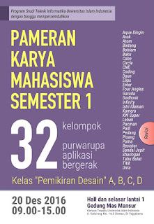 Exactly on December 20th of 2016, my department agreed to make a little exhibition to display our final project for Design Thinking class. It's about making of a mobile apps prototype for both iOS and android operating system. The exhibition was held at the hall of Mas Mansur building, Faculty of Information Technology in our university.